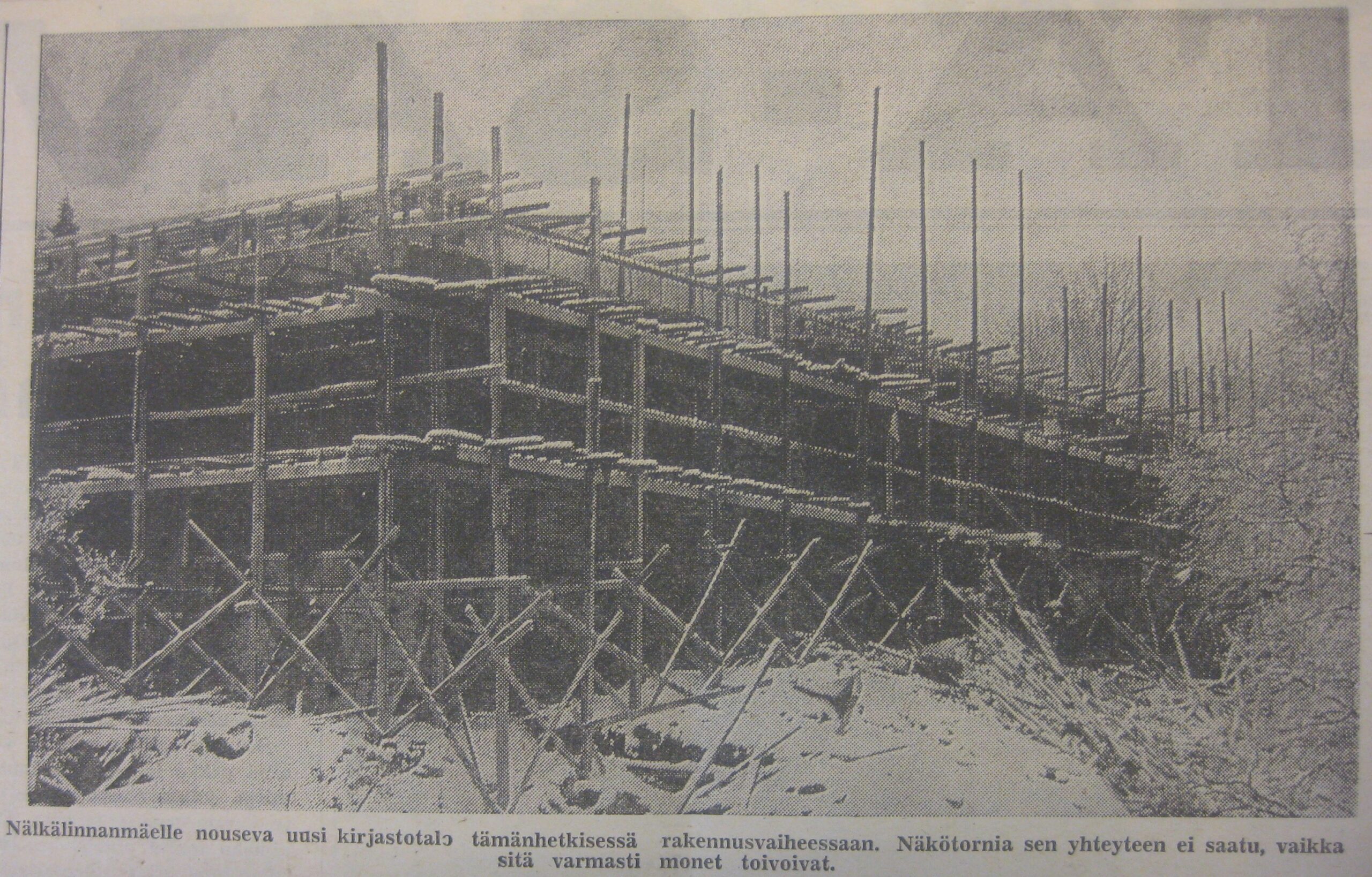 Kirjastorakennus harjakaisvaiheessa IS 16.2.1964