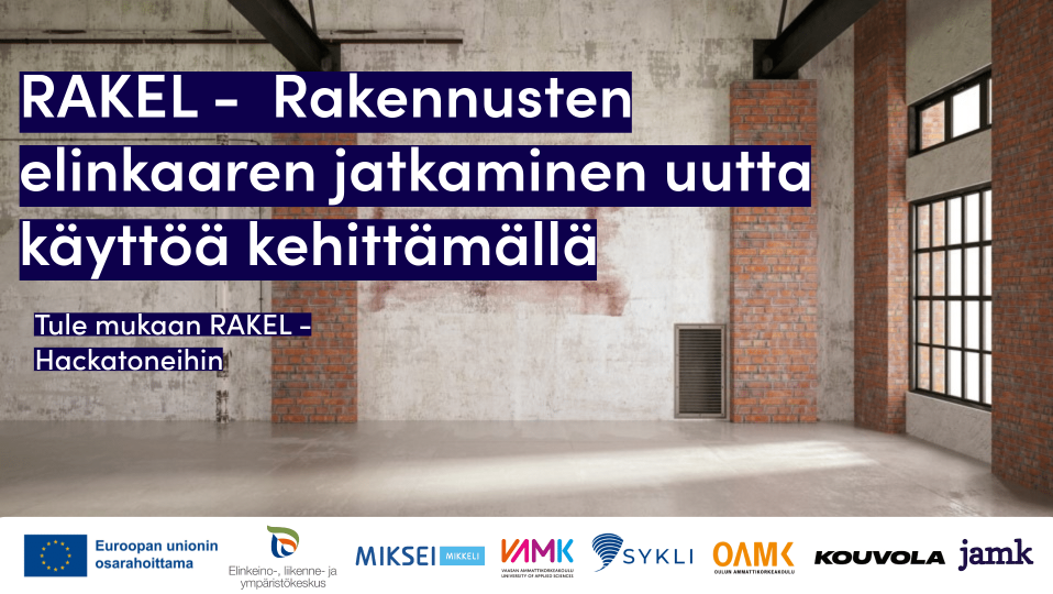 Onko sinulla idea, miten tyhjä tila saataisiin takaisin käyttöön ja kiinteistön elinkaarta pidennettyä? RAKEL-hankkeen hackathonhaaste kutsuu yrityksiä ja muita tahoja kehittämään ja pilotoimaan ratkaisuja vajaakäytössä oleviin rakennuksiin. Parhaat ideat palkitaan ja voivat avata pohjan uudelle liiketoiminnalle. Ideakilpailu on käynnissä 13.1.–22.2.2026.