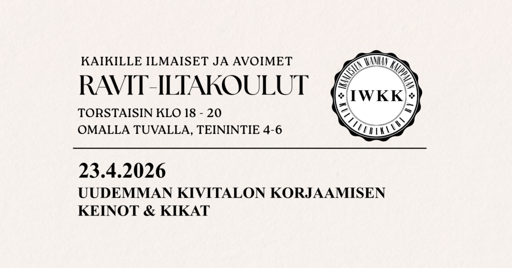 Arkkitehti ja restauroinnin artenomi sekä helmikuussa 2026 ilmestyvän Pelastakaa talot! – Purkuvimmaa purkamassa -kirjan toinen kirjoittaja Riina Siren kyseenalaistaa nykyistä tapaa purkaa vanhaa uuden tieltä. Museoviraston erityisasiantuntija Leena Marsio johdattaa yleisön aineettoman kulttuuriperinnön äärelle. Kulttuuriympäristöpäivien koordinaattorit ympäristöministeriön Hanna Hämäläinen sekä Suomen Kotiseutuliiton Anna-Maija Halme tarjoavat käytännön vinkkejä teemavuoteen osallistumisesta. Lisäksi kuulemme sydäntälämmittäviä tarinoita pelastetuista ja vaalimisen arvoisista kulttuuriperintökohteista. Tilaisuuden juontaa Museoliiton viestintäpäällikkö Miisa Pulkkinen.