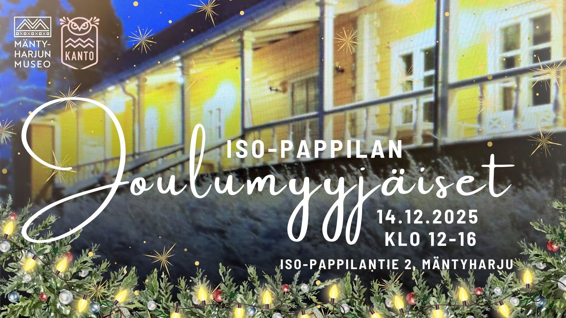 Tervetuloa tunnelmoimaan Wanhan Ajan Joulua Mäntyharjulle Iso-Pappilan kauniiseen ja idylliseen miljööseen! Iso-Pappilan pihapiiriin kuuluu myös 1800-luvulta peräisin oleva väentupa ja...
