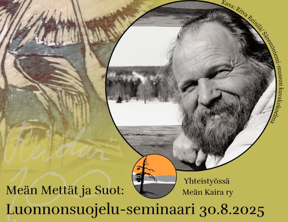 Särestöniemi-museo Särestöntie 880, 99110 KaukonenOsana REIDAR100 -juhlavuoden virallista ohjelmistoa Särestössä järjestetään luonnonsuojeluaiheinen seminaari. Yhteistyössä Meän Kaira ry. Tervetuloa kuulemaan monipuolisia puheenvuoroja ja esityksiä paikan...